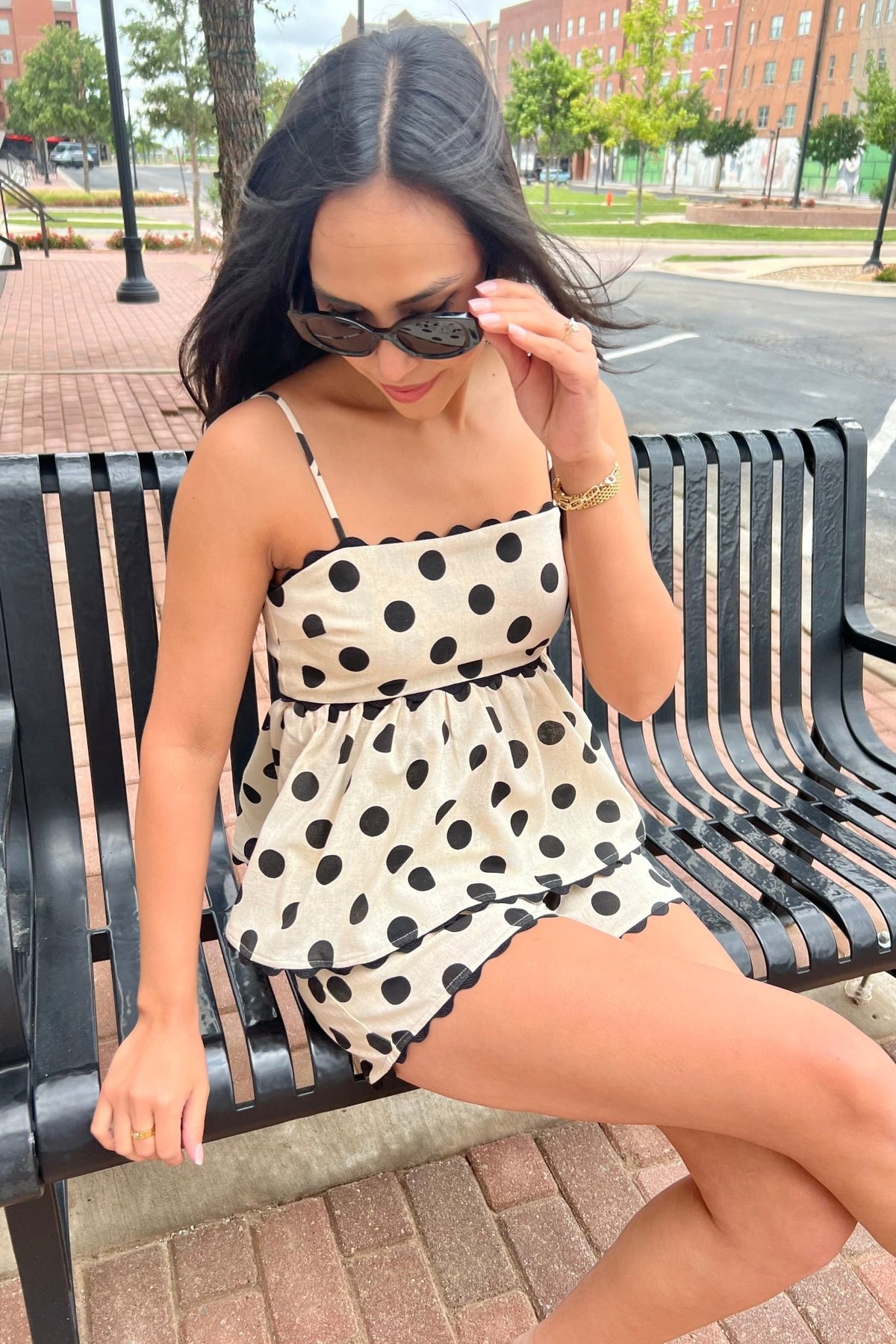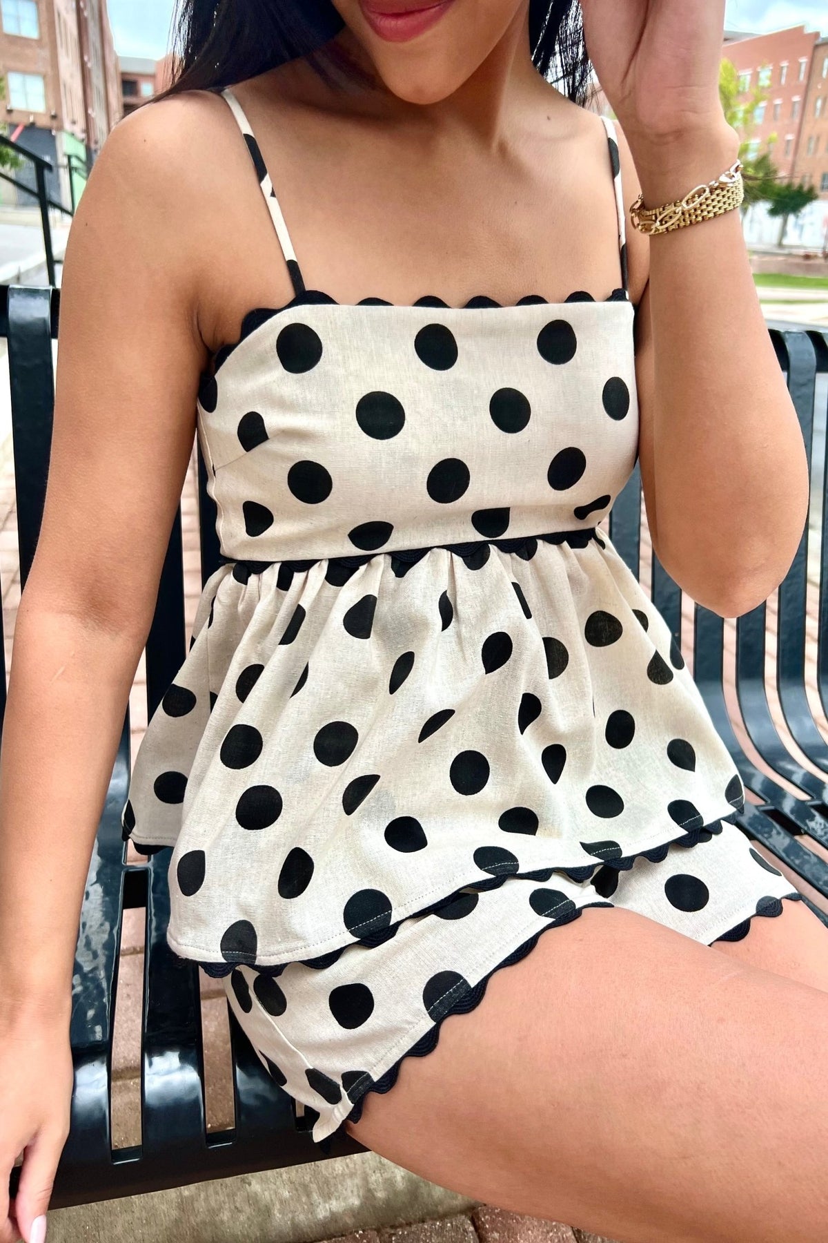 Playful and polished, this polka dot set is made for sunshine and good vibes. Featuring a lightweight fabric, flirty silhouette, and a classic dot print that never goes out of style—wear it together for an effortless set moment or mix and match to keep it fresh.