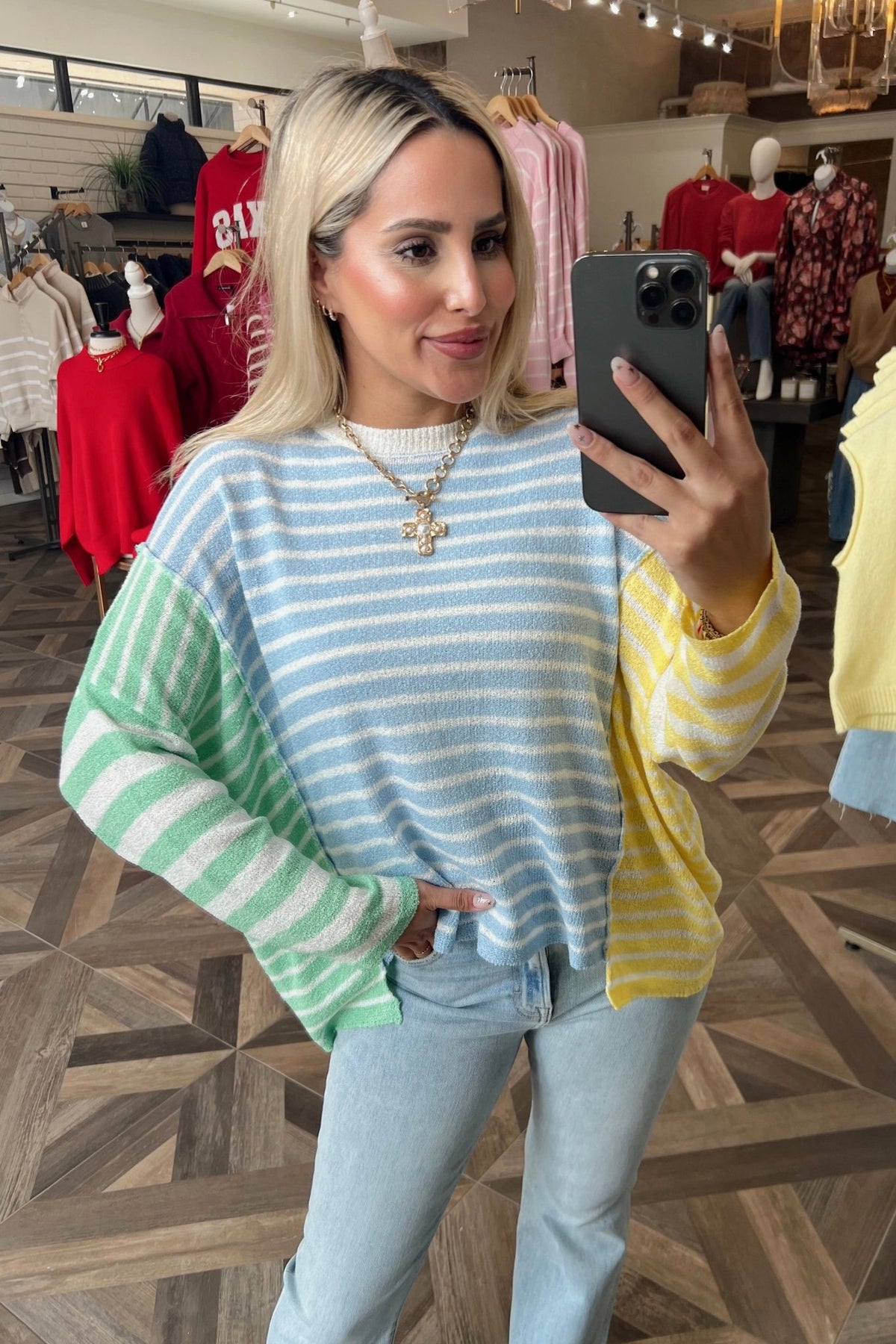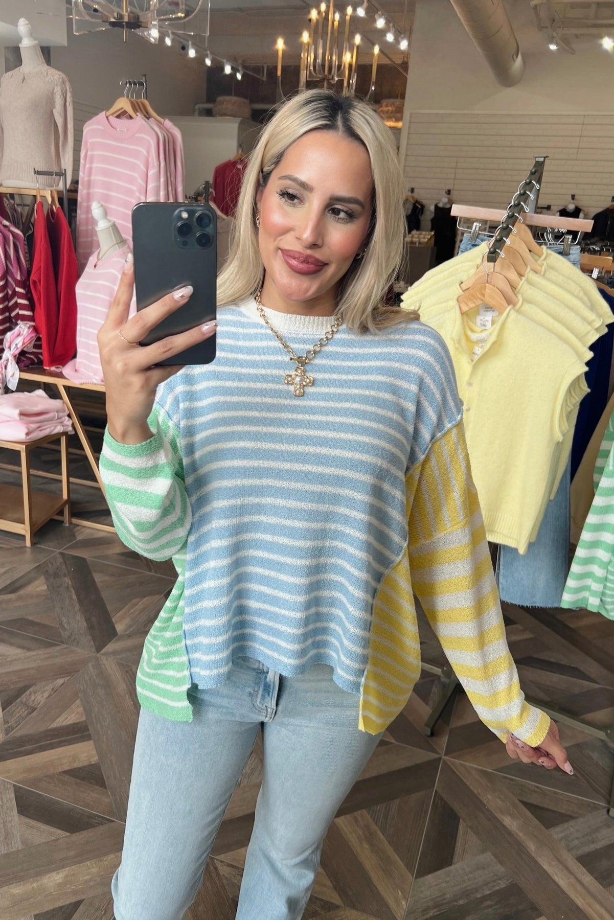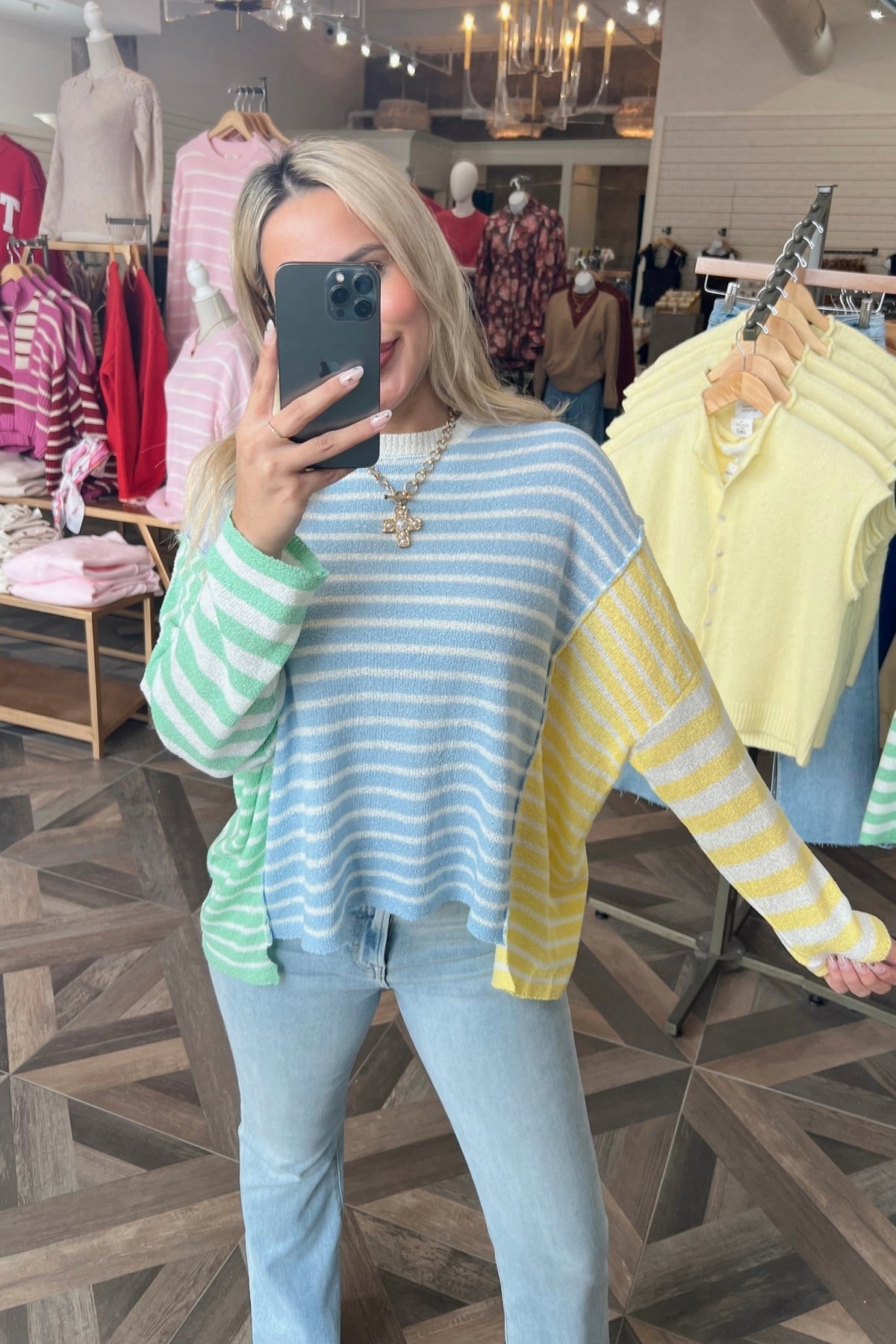 Cool pastel stripes in an easy, relaxed fit. She's the perfect wear now color story.