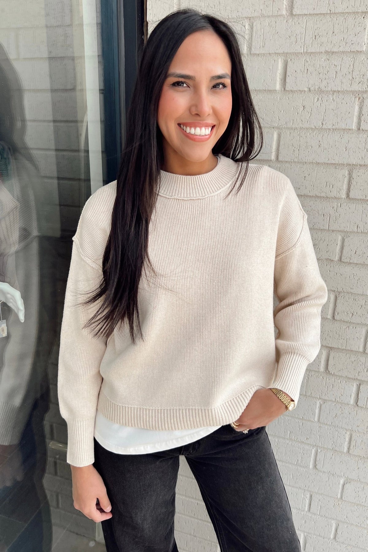 A lightweight, wear-all-year knit with an easy drape and a relaxed silhouette you can style a dozen ways. Layered over a tee, paired with denim, or styled sporty with track pants, this sweater adds that "polished but still comfy" vibe every busy day needs. Soft ribbing, dropped shoulders, and a length that sits just right.