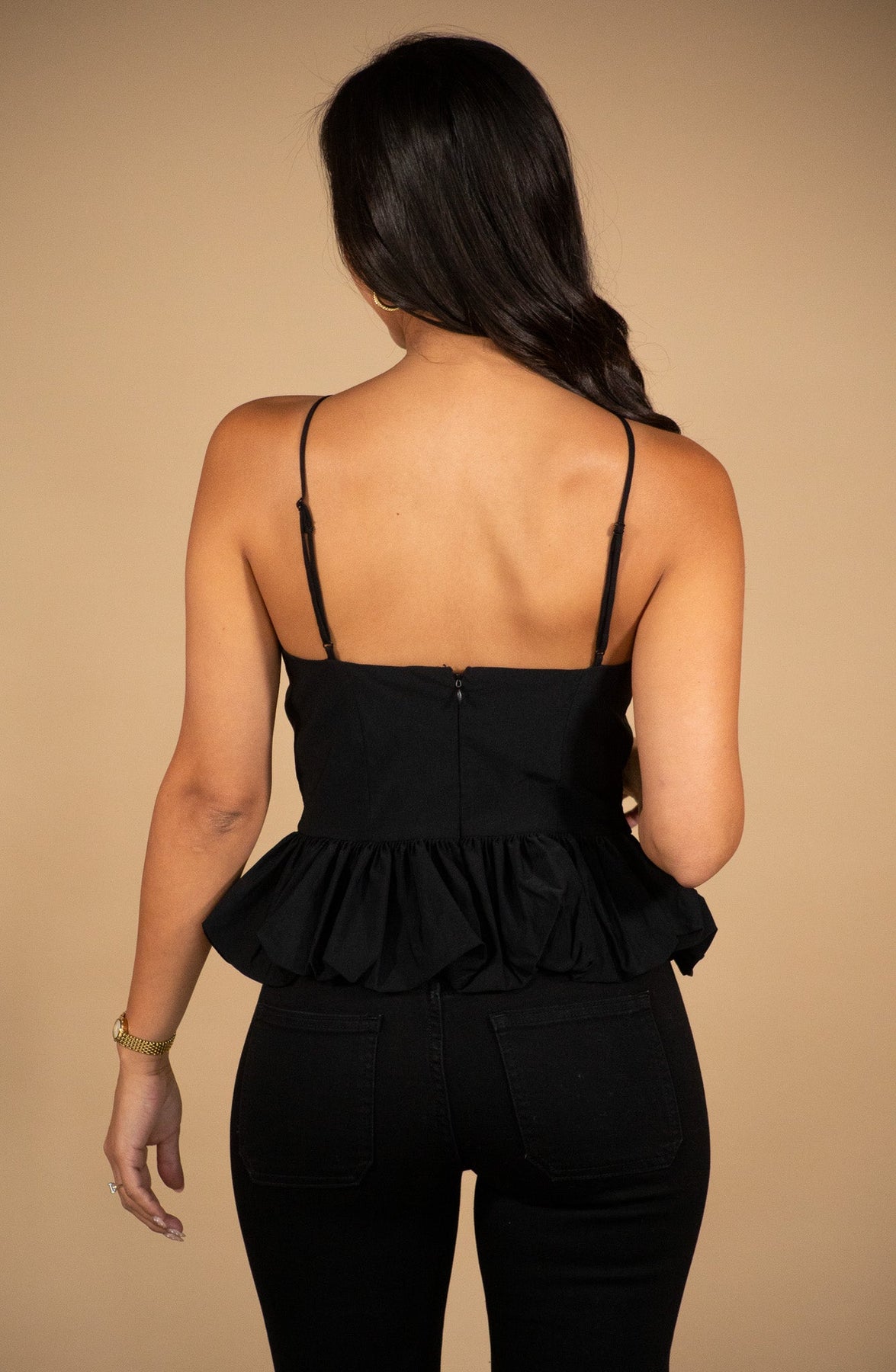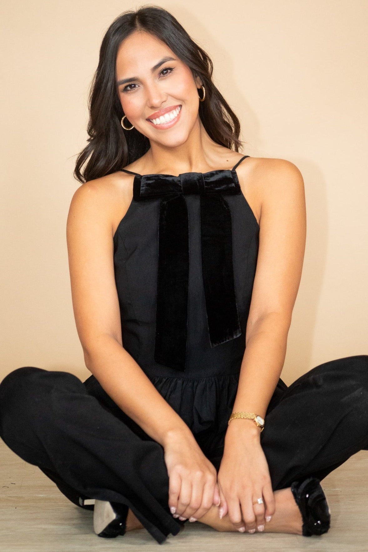 The velvet bow detail steals the spotlight on this playful peplum top! Perfect with denim or paired with black pants for a dressier night out.
