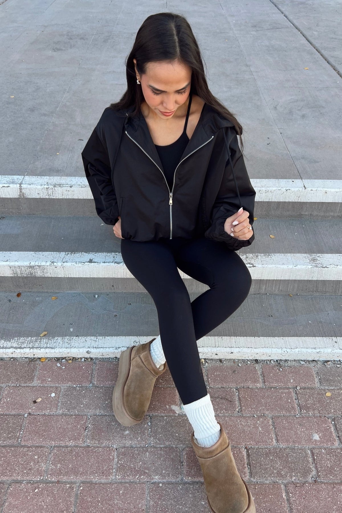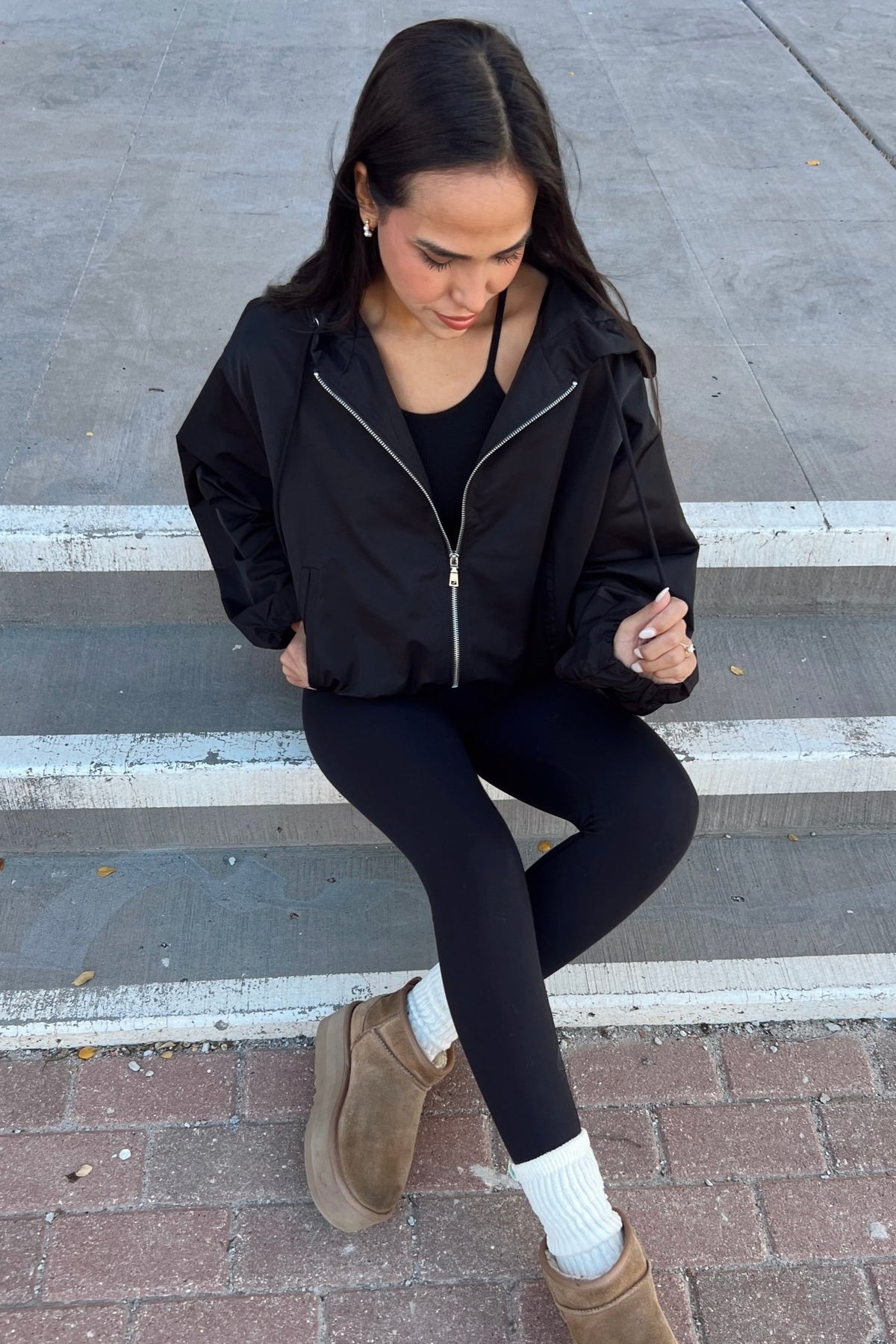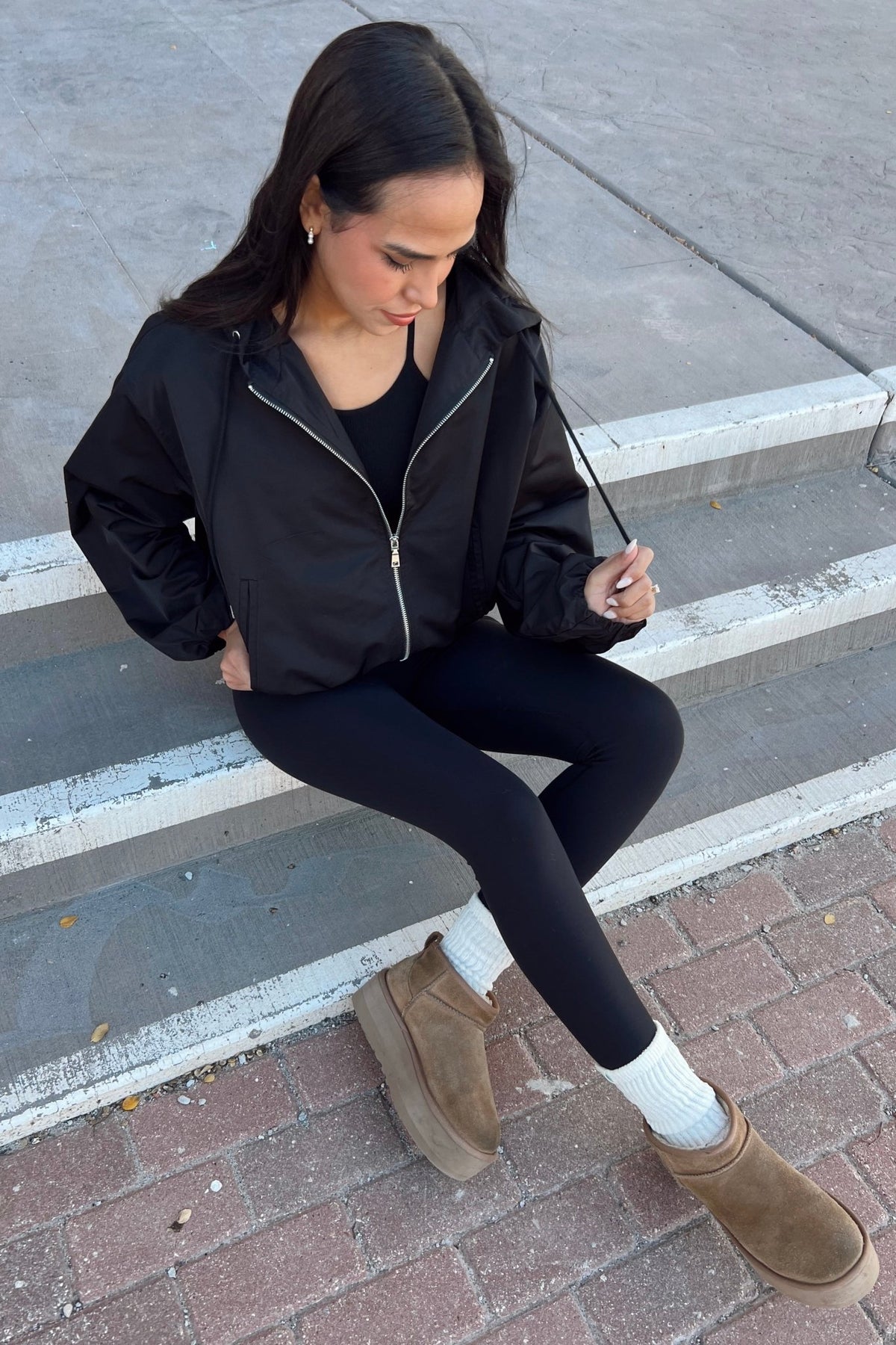 For all your throw-on-and-go moments. The Raven Windbreaker keeps it lightweight and sleek with a relaxed fit, zip front, and adjustable hood. It’s the perfect grab-and-go layer for school runs, travel days, or breezy weekend plans.