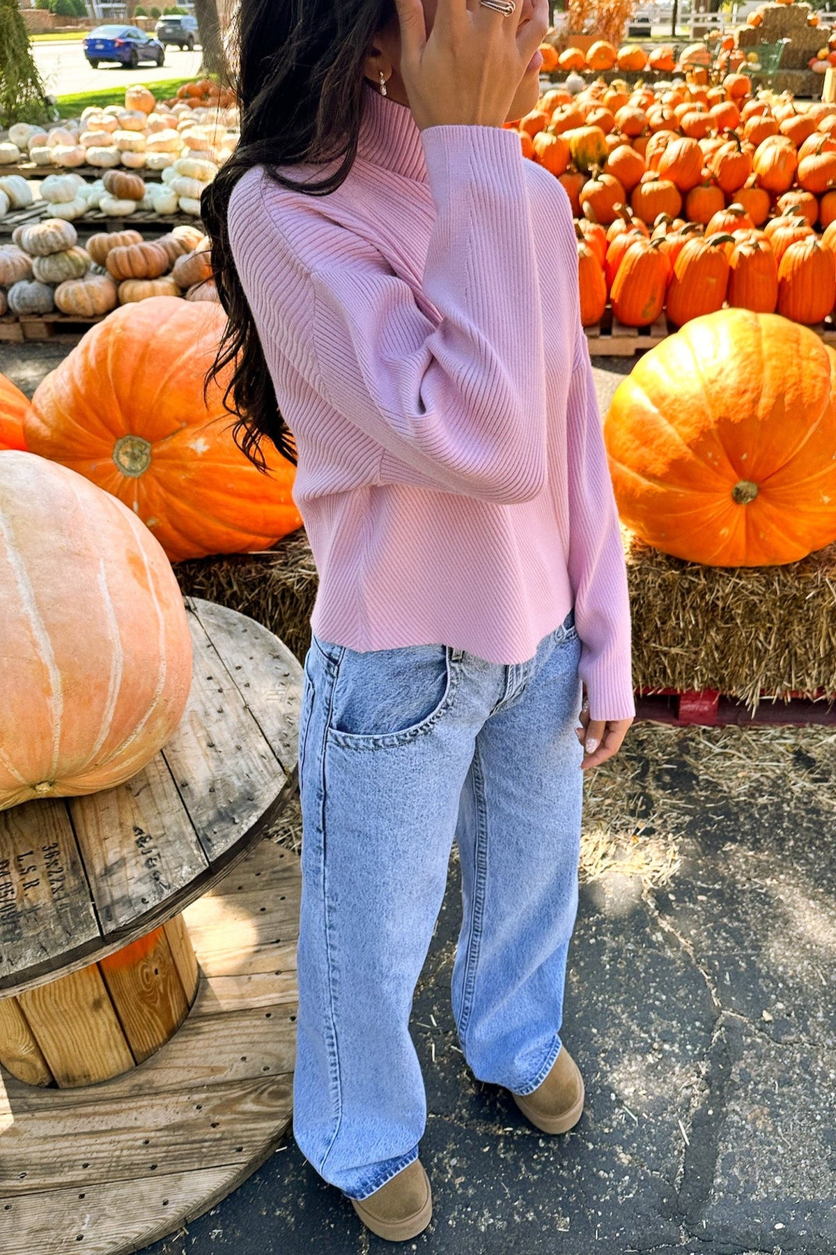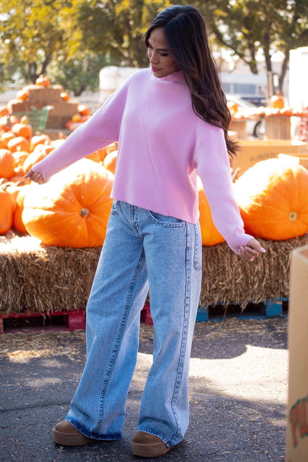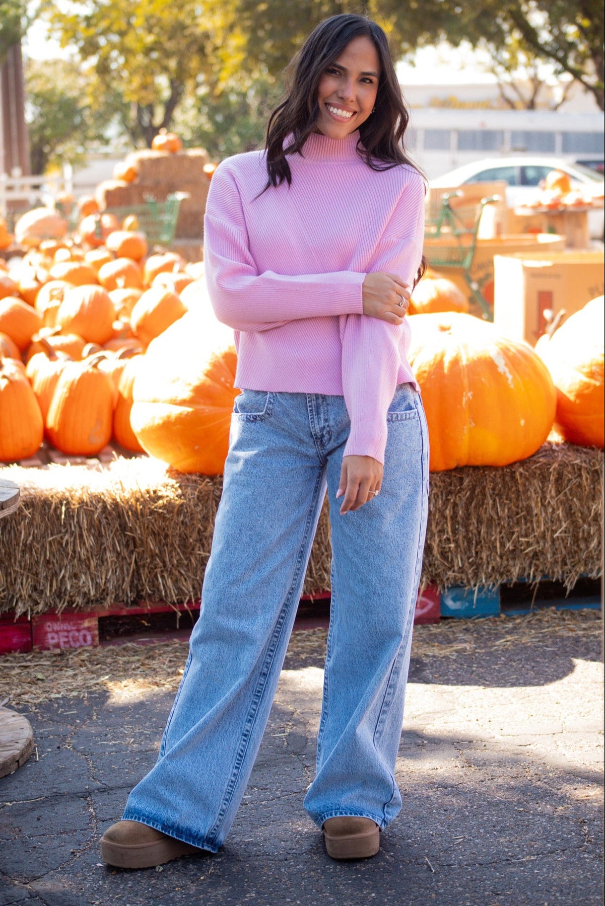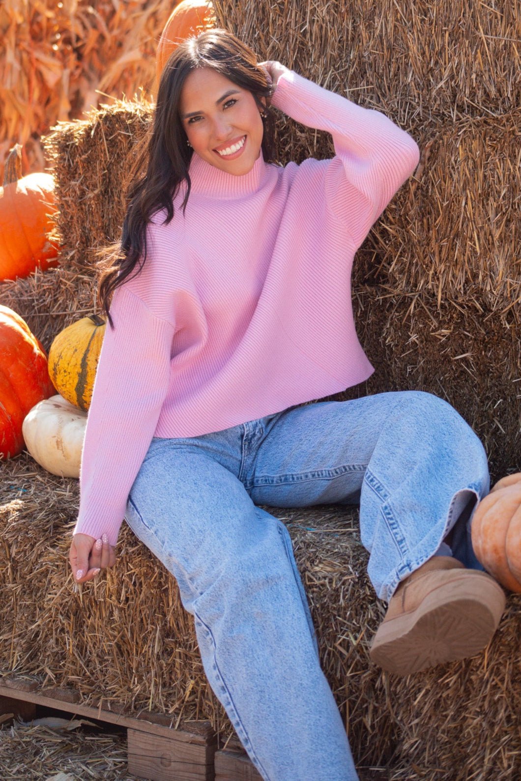 Sweet with a side of cozy, this pink mock neck sweater is the unexpected fall pop you’ll love pairing with denim and boots.