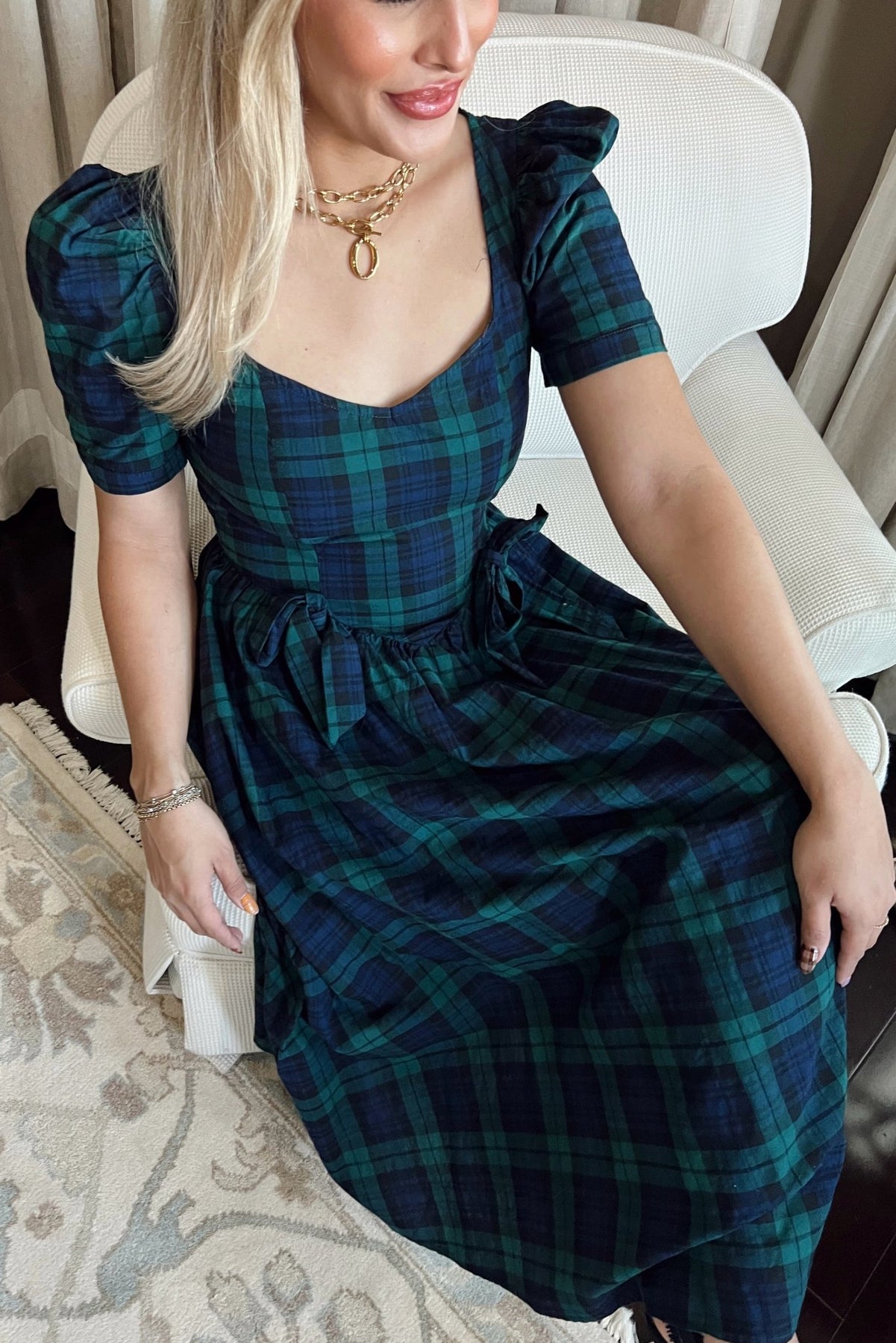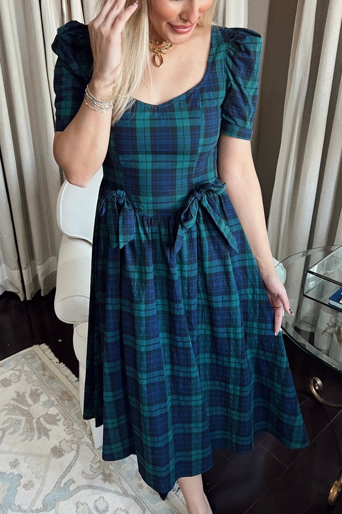 A timeless plaid moment with sweet waist ties and a classic holiday feel. Perfect for parties, photos, and everything merry in between.