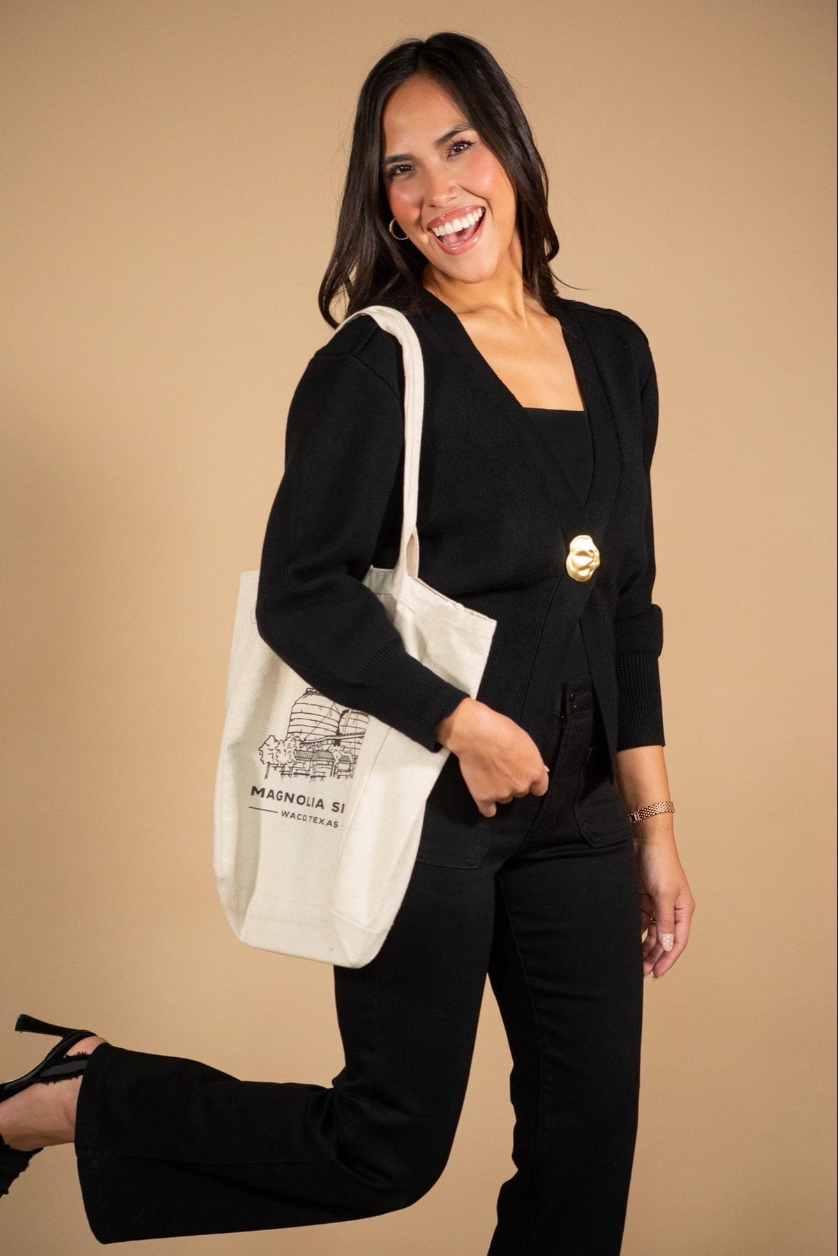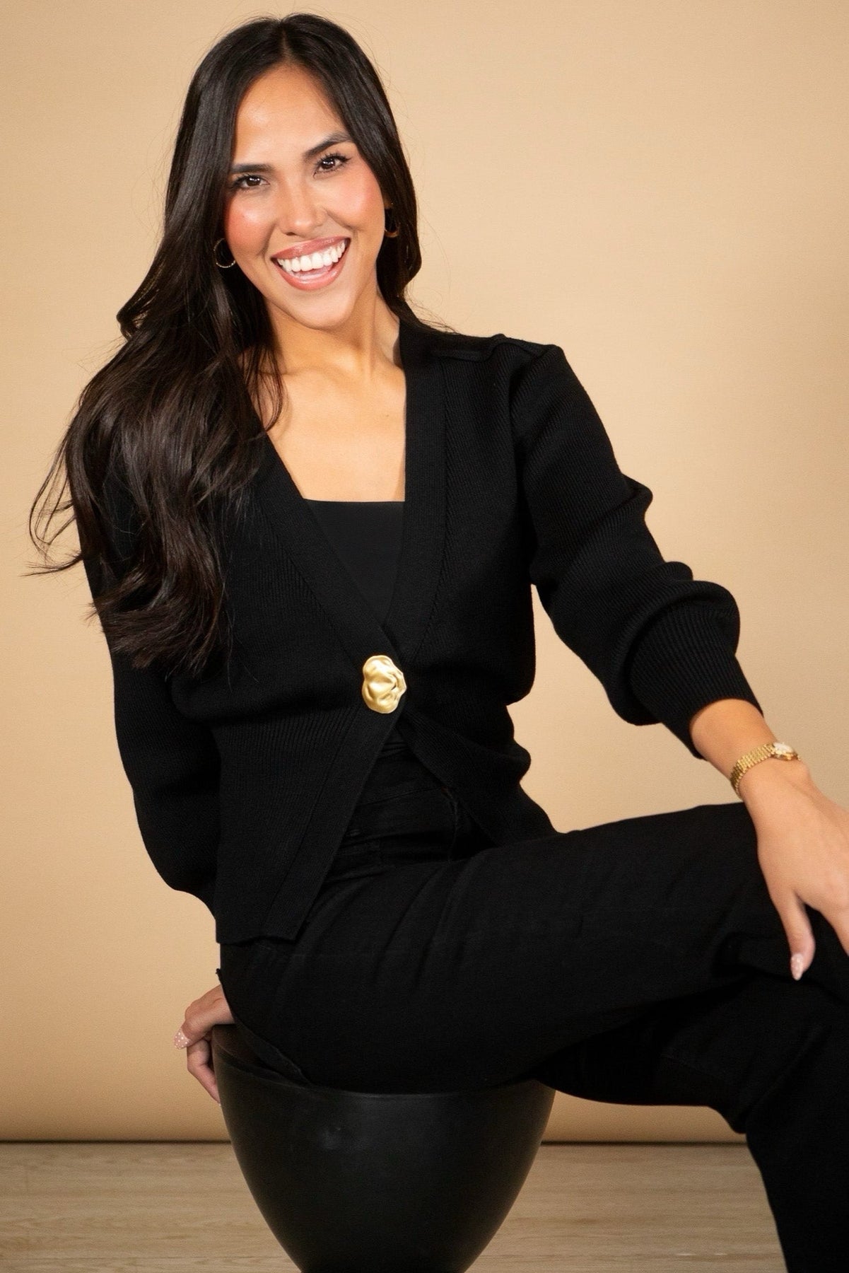Sleek and versatile with a bold clasp closure, this cardigan layers effortlessly from work to weekends.